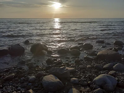 2. juuli õhtul sõitsime poole seitsmese bussiga Lemme. Täpselt tunni aja pärast peatus buss Lemme peatuses. Sealt on meie suvilani 800 meetrit. Muide, hetkel on ka RMK Lemme telkimisalal kohvik avatud. Seal on ka saun jne ... ning RMK telkmisala on suviti tasuline, kassa on kohe seal väravas. Väidetavalt on see Eesti ainuke tasuline RMK ala, aga asi on seda ka väärt, sest Liivi lahe Häädemeeste valla rannajoonel pidavat kõige imelisem päikeseloojang olema. On ka. Lemmes on tõesti ilus ja isegi varakevadel ja hilissügisel pargib metsa all reisikaravane. Ühe armsa Tartu tuttava käest sain teada, et ka nemad olid juba märtsis seal olemas. Vesi tuleb kraanist tasuta ja jalgsi ning rattaga liigedes ei pea sa uuesti piletit ostma, aga kui autoga välja sõidad, pead tagasi tulles. Meie toome ka endale vee seal, sest meil suvilas vett ei ole. Aga selle eest on meri kohe ukse ees ja seene- ning marjametsad ka. 2. juuli õhtul jalutasime Germoga rannas ja ma leidsin auguga kivi ning natukese aja pärast valge luige sule ning pisikese musta sule ka, aga ma ei tea kelle oma see on. Igal juhul mahtusid need kenasti kivi augukesse ja sinna need ka jäid, viisin suvilasse ja asetasin kapi peale. Imelised! Sellel ajal kui päike merre vajus ja iga sekund erinevaid nägusid moodustas, riisusin mina suvila ümbrust. Käbisid kukub ju pidevalt ülevalt ning ma olen korda teinud terrassi kõrval asuva ala, see on vana luiteala, liivase pinnasega. Ämbritäite kaupa tarin siiani sealt vanu käbisid, pudelikorke, pugedlikilde ja igasugust muud rämpsu, mis on aastaid seal seisnud. Olen enamus juuri ka välja kangutanud, aga teha on küll ja veel. Soovin sinna kiviplaadid panna, kuhu saaks grilli ja pesuresti edaspidi asetada, sest terrass jääb muidu kitsaks ning targem on sinna kivi panna, ei kõdune ega mädane. Maakividest vedasin eelmisel suvel jalgtee välikemmerguni, aga terrassi kõrvale need maakivid ei sobi, raske koristada, sest käbid ju puu otsast otsa ei lõppe. Ja niinimetatud dušinurga terrass on õnneks äravõetav, sellise Urmas tegi, nii saan maja alla vajunud käbid ja oksad ära koristada, et need maja põrandale liiga ei teeks. Ja muidugi kreek, visahingega tegelane ajab oma juuri ka igale poole, neid kangutan ka üles. Kibuvitsa juuri on ohtralt, neid annab kangutada. Aga paarsada ämbrit risu olen juba minema tarinud. Viin need ranna äärele täiteks. Muide, nägin jaaniussi ka 2. juuli õhtul, aga seniks kuni telefoni tooma läksin, kadus. Eelmisel aastal põles pikemalt. Koos päikese loojumisega sain ka riisutud. 3. juuli hommikusöök söödud ja kohvi joodud, jalutasime metsa. Ühte ämbrisse korjasin maasikaid ja mustikaid, mille me hiljem ära sõime ja teise ämbri sain kukeseeni täis. Minu armas lapsepõlvemets Orajõel ikka hoolitseb, et meil oleks kõht täis :) Aitäh! Ma alati tänan loodus ja loomulikult ka metsa rikkaliku saagi eest. Enne seda ehk siis enne metsa minekut käsime ja tõime RMK-l veekanistrid vett täis, sest peale metsast naasmist pesime ennast ja viskasime kõik riided ja kummikud ka pessu, sest puuke on lademetes. Korraga leidsin jala pealt 7 tükki. Aga mitte metsast tulles vaid suvila ümbrust koristades. Merre ei saanudki, sest vesi oli väga külm, isegi varbaga katsudes oli külm. Ja ilm pööras ka ära, lennutas mu pesuresti liiva sisse kummuli ning hakkasin pesu uuesti üle loputama ning panin rasked kivid pesuresti jalgadele. Need sain kohe terrassi juurest, sest eelmisel korral vedasin need terrassi äärtesse, et käbid ja praht terrassi alla ei läheks. Veidi sirutasin selga, muide isegi Germo losutas ja silm vajus kinni. No mina lausa magasin pool tundi, sest ma ei saa suvilas magada ning siis läksime taas jalutama, olime otsapidi juba Majaka külas. Tagasi tulles läksime bussiaegu vaatama, aga kahjuks pole uusi aegu bussipeatustes, millest on väga kahju. Loodame, et need pannakse ikka. Nii ma siis Maarjale helistasin ja uurisin kas ikka viimane buss tuleb linna suunas, nagu eelnevalt lehest lugesin. Tuli. Oli Lemmes kell 20.17. Olime Germoga ainukesed sõitjad. Tulime tormi ja vihma eest Pärnusse pakku. No väidetavalt olla mõne kilomeetri kaugusel üle 30 soojakraadi olnud, aga meil Lemmes läks külmaks, tormiseks ja vihmaseks. Enne bussile tulekut ajasin veekanistreid mööda hoovi taga, mida tuul pillutas. Loodan, et need jäid nüüd dušinurga laua alla pidama. Ja 58 minuti pärast peatusimegi Pärnu bussijaamas. Selline seiklus. Tulge ka meiega maale, meil on seal suur nari, kus on maganud isegi 8 inimest. Mahume ära. Soovi korral võite ka telgiga tulla, küöl leiame ka sellel koha. Tulge puhkama, suve nautima ja metsaande korjama ning ujuma, päevitama jne... Ausalt. Olete väga oodatud! Aga peate leppima tõsiasjaga, et leviga on seal suured probleemid, kuid maanteele liikudes saab juba ehk ka helistada ja paadil, mis asub mu suvila taga, on ka õnnestunud vahel. Aga andke enne teada, sest me sahmime igalpool ringi, paar külastust on ka veel sellel suvel plaanis teha Häädemeeste vallas. Tulge, aga tulge! 4. juuli 2025. Vana-Rääma